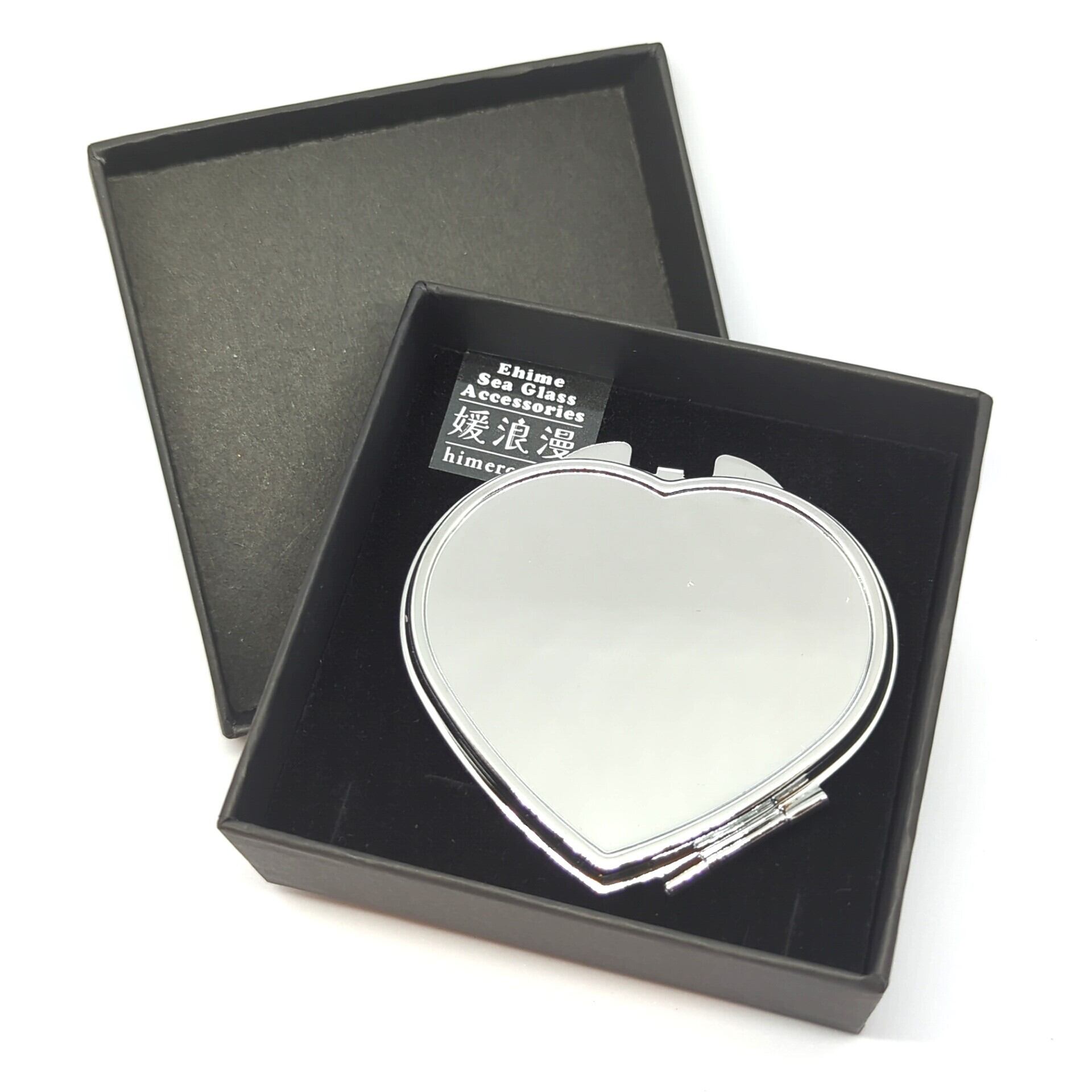 愛媛県産シーグラスやシー陶器を使用したデコレーションが特徴のコンパクトハートミラーです。